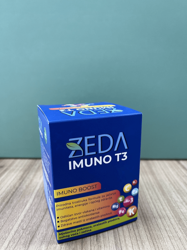 Prirodna trostruka formula za jačanje imuniteta, energije i općeg zdravlja. Zeda Imuno T3 je proizvod namijenjen osobama koje pate od hronične anemije, loše krvne slike i hemoglobina, slabog imuniteta. Preporučuje se djeci od prve godine života, odraslima, dijabetičarima i onkološkim pacijentima, čak i tokom hemoterapije.